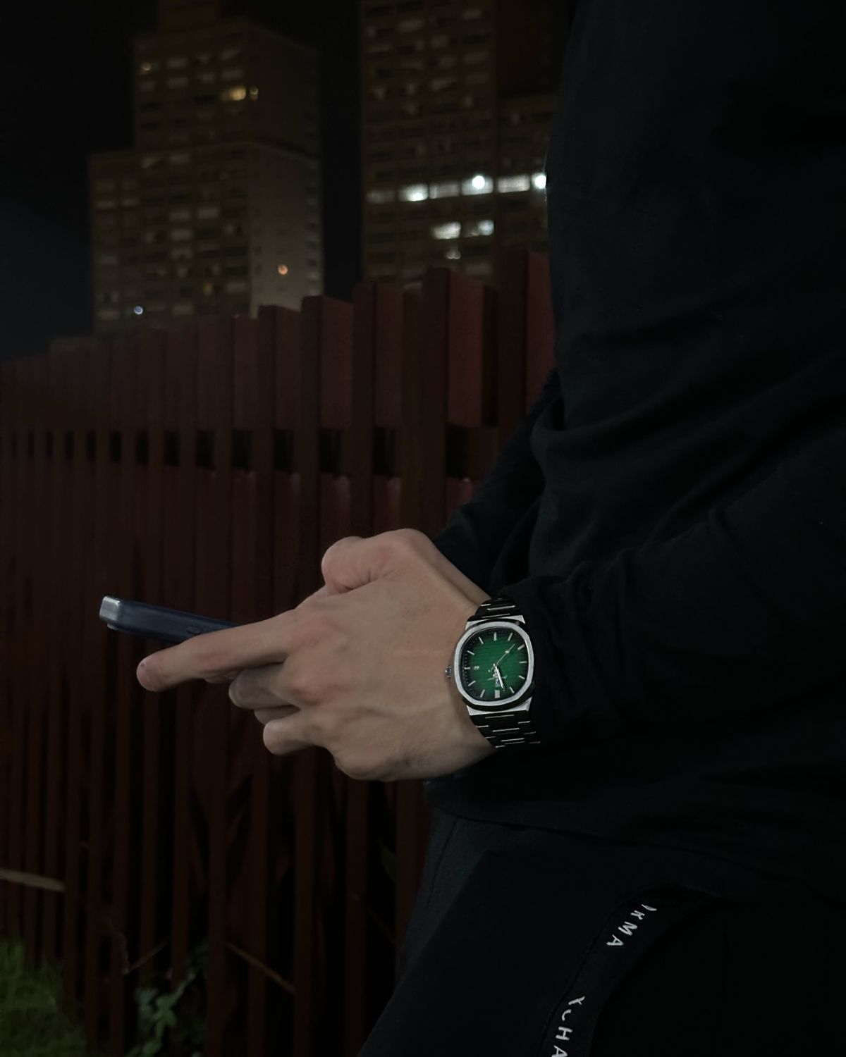 Usamos un acero inoxidable de primera categoría (el 316L) para nuestros relojes. Es conocido por ser súper resistente, durar muchísimo y mantener su brillo intacto. Esto garantiza que tu reloj se verá siempre como nuevo, sin importar cuánto lo uses o dónde estés.