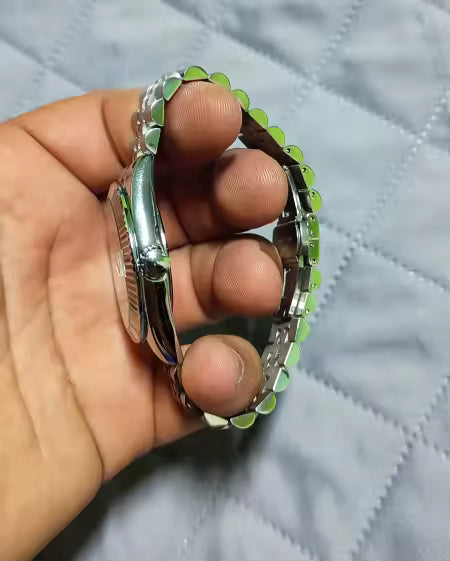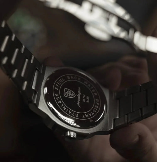 Usamos un acero inoxidable de primera categoría (el 316L) para nuestros relojes. Es conocido por ser súper resistente, durar muchísimo y mantener su brillo intacto. Esto garantiza que tu reloj se verá siempre como nuevo, sin importar cuánto lo uses o dónde estés.